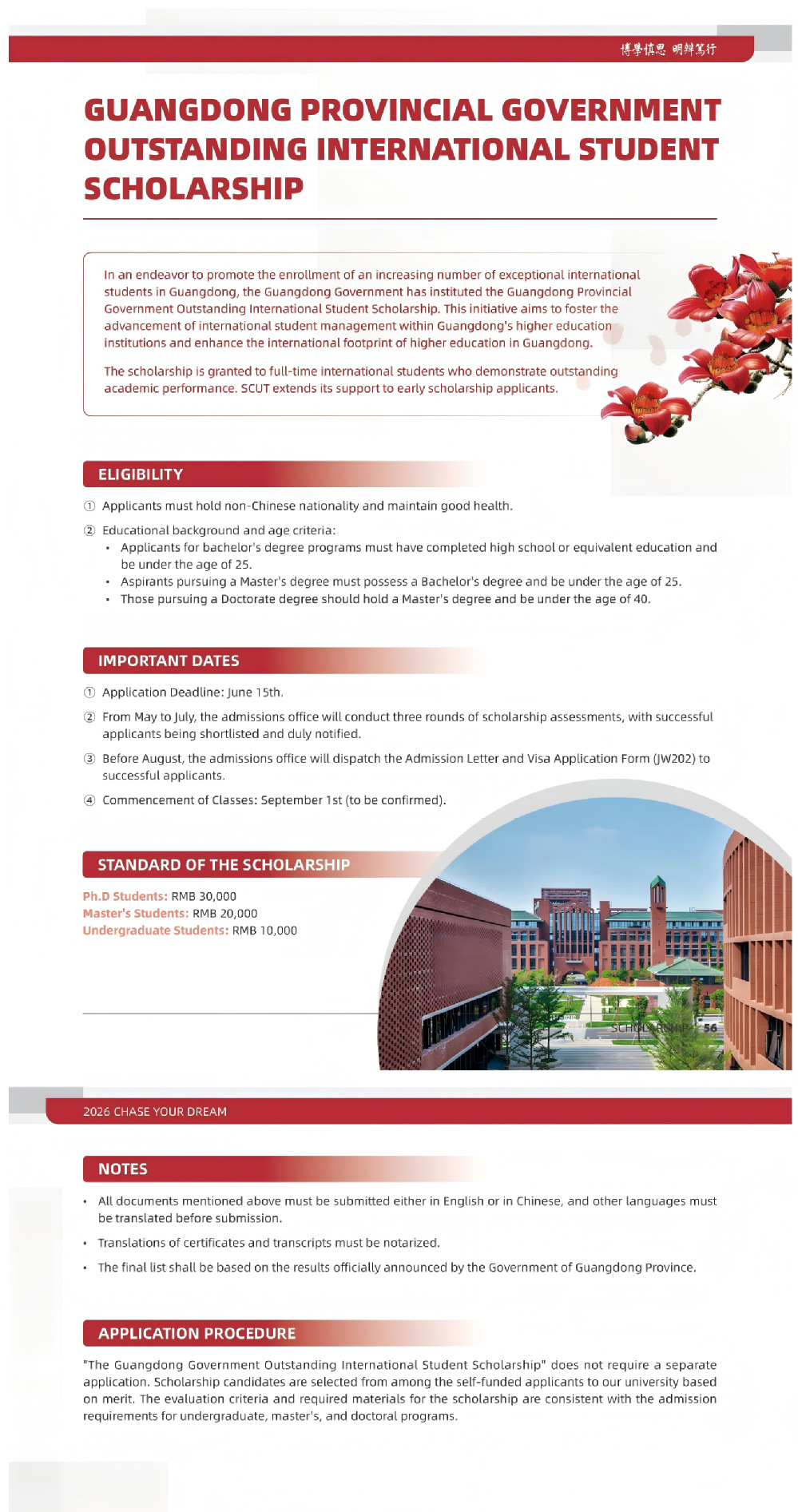 - Guangdong Provincial Government Outstanding Foreign Student Scholarship