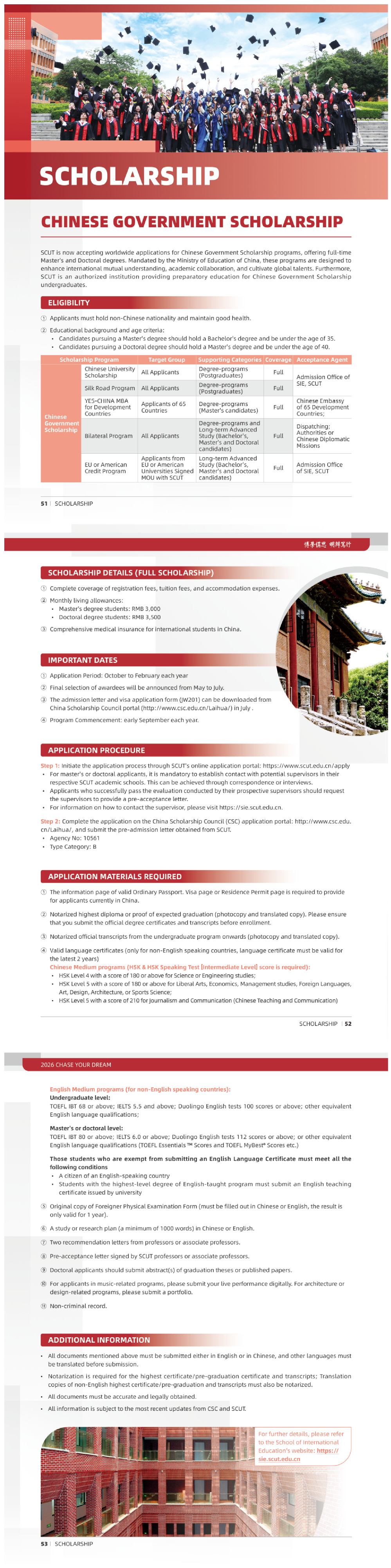 - Youth of Excellence Scheme of China Program Chinese Government Scholarship